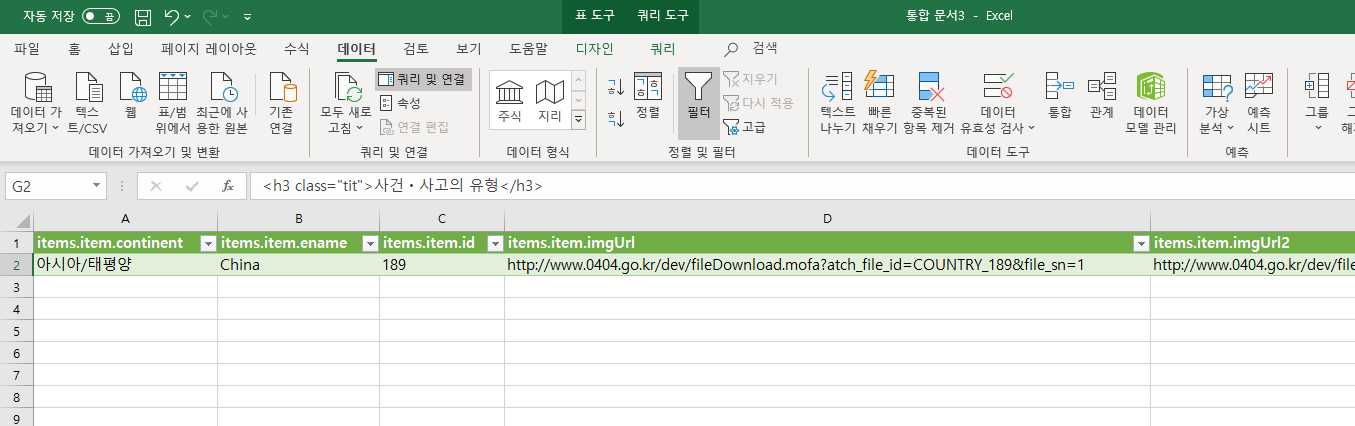 원본 = Xml.Tables(Web.Contents("http://apis.data.go.kr/1262000/AccidentService/getAccidentList?ServiceKey=6Y22zMihdCFMNYzSPWdfmishHHK2AGuH71RH1gp%2FKZVEWwFKJZxko8jwn3rKsEGbMZv88rAMWbIxw3nusf1dNg%3D%3D&isoCode1=CHN"&Text.Upper(country))),