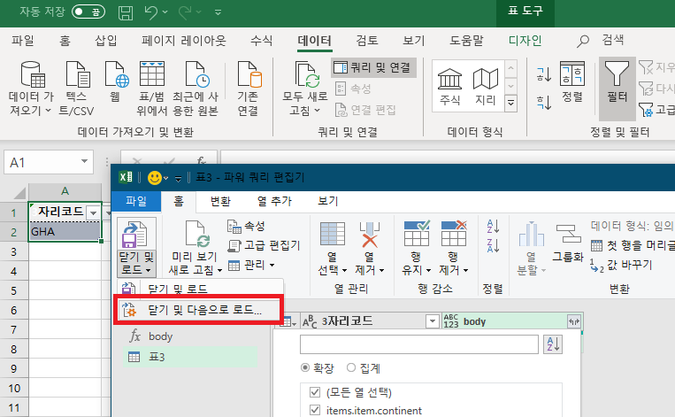 이걸 하는 이유는 파워쿼리를 쉽게쓰기 위해서다.