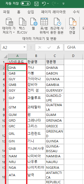 엑셀에서 body를 누르고 데이터 변환을 눌러준다.