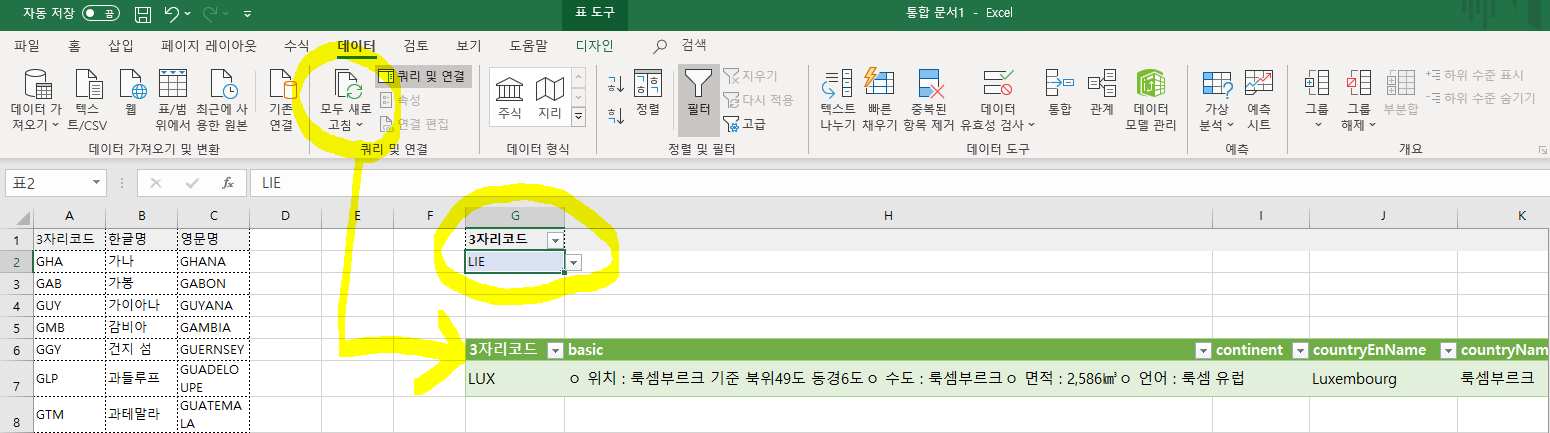 새로운 시트에 요렇게 하나정도만 테이블 써주고 데이터> 데이터 유효성 검사 클릭