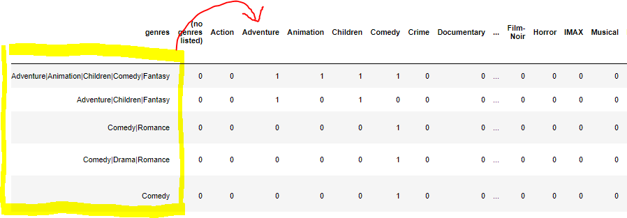 genres = movies['genres'].str.get_dummies(sep = '|')