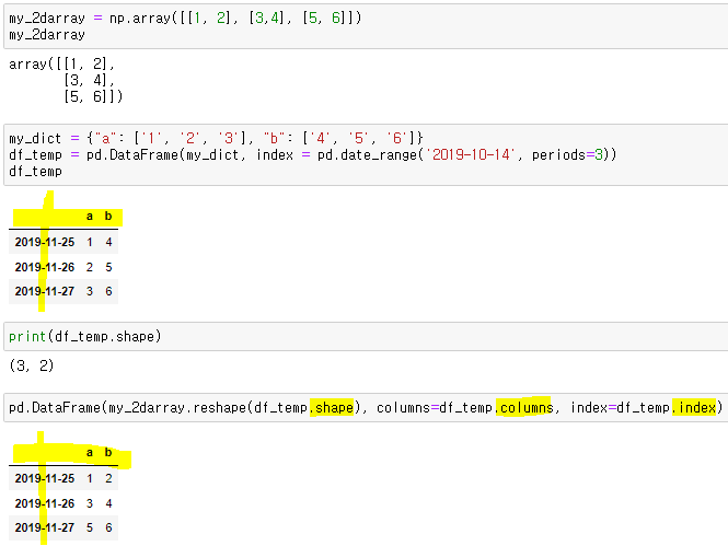 pd.DataFrame(my_2darray.reshape(df_temp.shape), columns=df_temp.columns, index=df_temp.index)